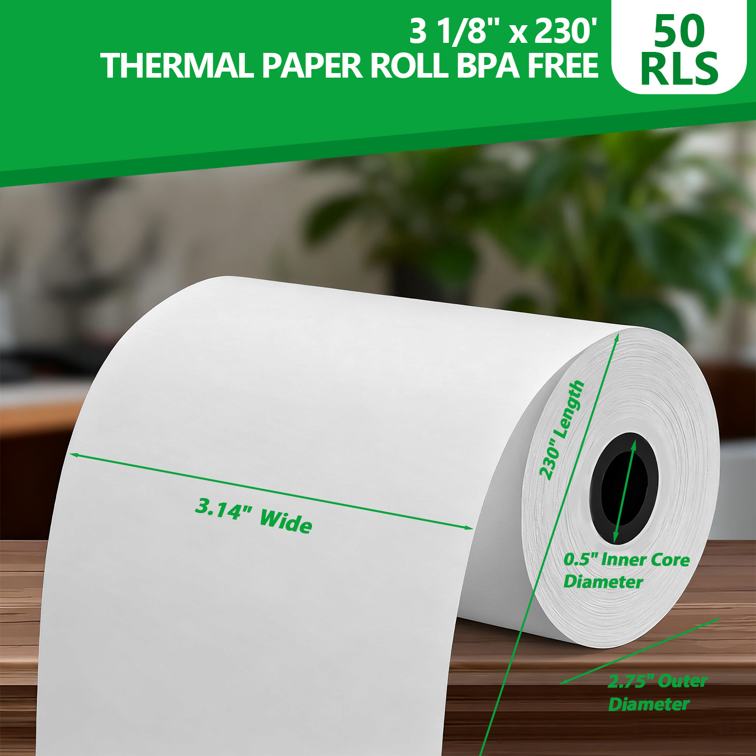 About this item Unbeatable Size Variety: With 3 1/8" x 230ft, 2 1/4" x 50ft, and 2 1/4" x 165ft, our thermal paper rolls are tailor-made to fit any thermal printer in your business, be it a bustling restaurant's POS or a small shop's cash register Safety and Durability at its Best: With a high-sensitivity thermal coating, our paper guarantees sharp and clear prints. The BPA-free not only meets strict safety standards but also resists fading, maintaining the legibility of printed receipts Commercial Efficiency Packaging: The 100-roll packs are perfect for high-volume users such as convenience stores, cafes, and supermarkets, reducing the frequency of restocking Rigorously Tested for Compatibility: Work seamlessly with most major printer, ensuring consistent printing during peak business hou Quantity