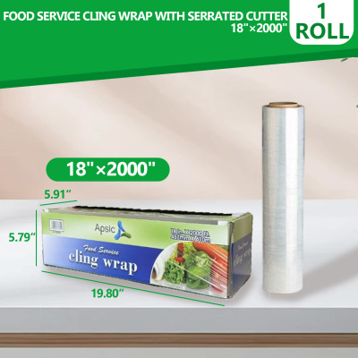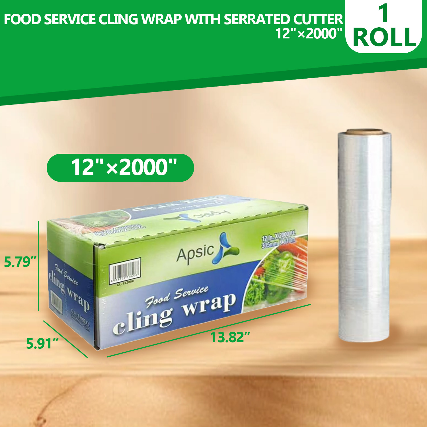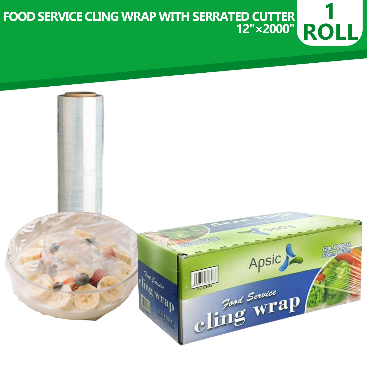 About this item Different Size: APSIC Food Service Cling Wrap have different size,12"×2000'/18"×2000'/24"×2000', professional foodservice plastic wrap for gourmet chefs in hotel, kitchen, restaurant and commercial Multipurpose Use: Keeps food fresher longer, freezer safe, can be used to wrap meat, fruits, vegetables Keep Foods Fresh: The Plastic Food Wrap made from extra-strong plastic wrap to seal in freshness, to keep foods fresh for a longer time Tears Off Easy: The Cling Wrap With Serrated Cutter can be torn away from the dispenser with ease Saving You Time: The plastic wrap with serrated cutter, allows you to easily use and cut as much wrap as you need, saving you time and effort Quantity